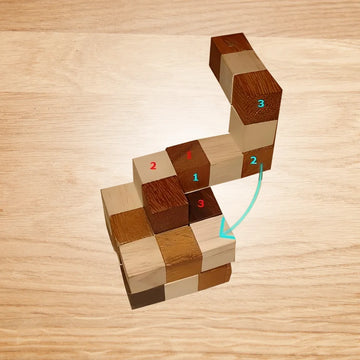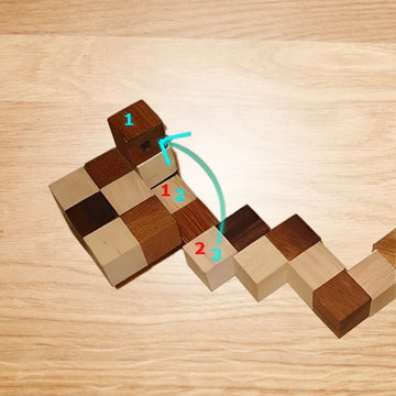 Step 5: Rotate the side from "2 blue" to "3 blue" around cube "2 blue" so that cube "3 blue" is positioned next to cube "1 blue".