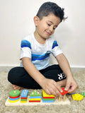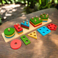 Wooden Geometric Blocks Stacker Shape Sorter Column Puzzle Montessori Education - WeToyToy 4 Column