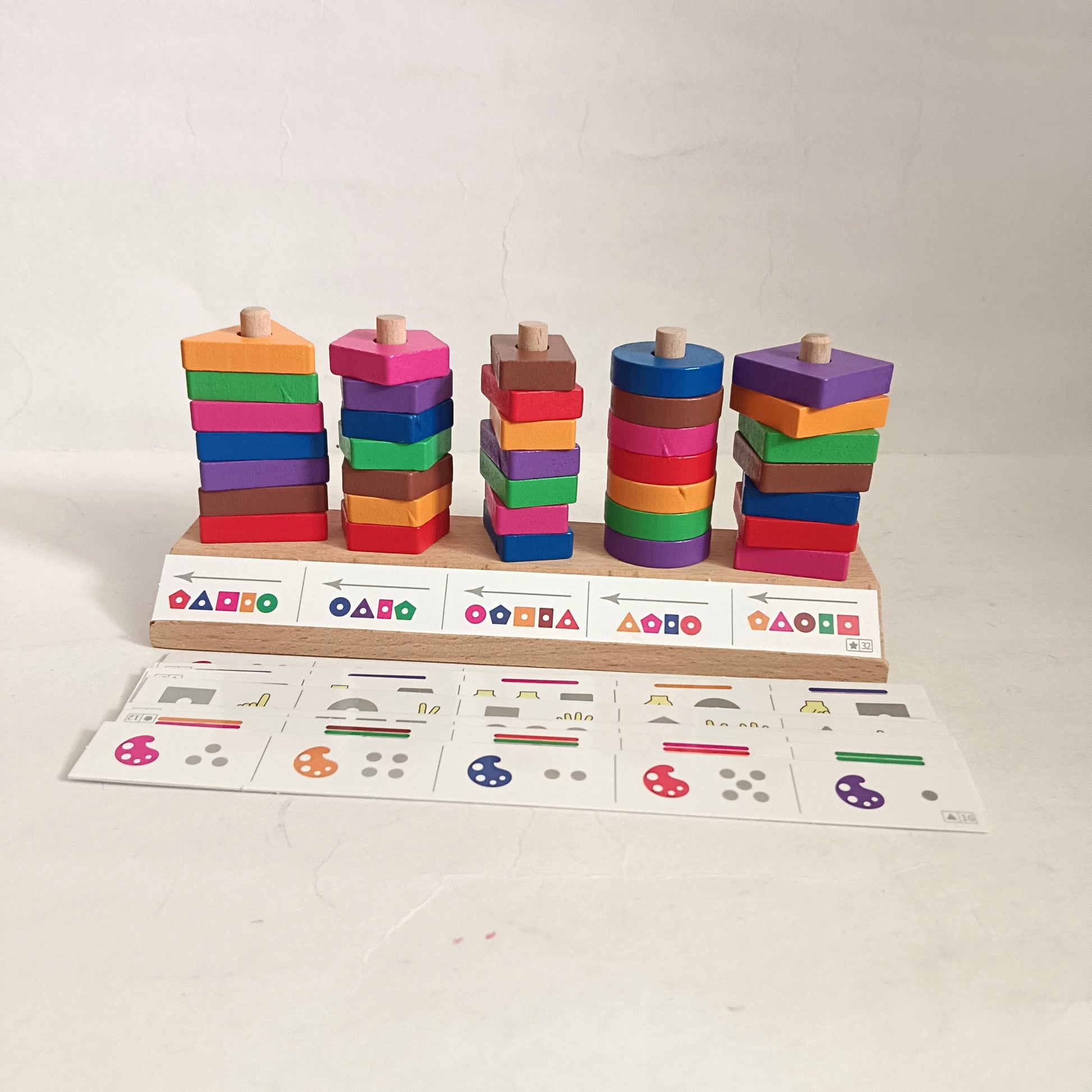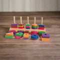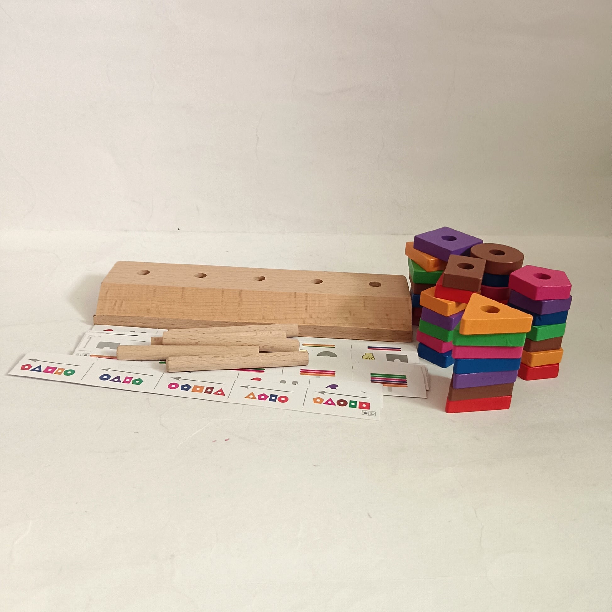 Wooden Geometric Blocks Stacker Shape Sorter Column Puzzle Montessori Education New